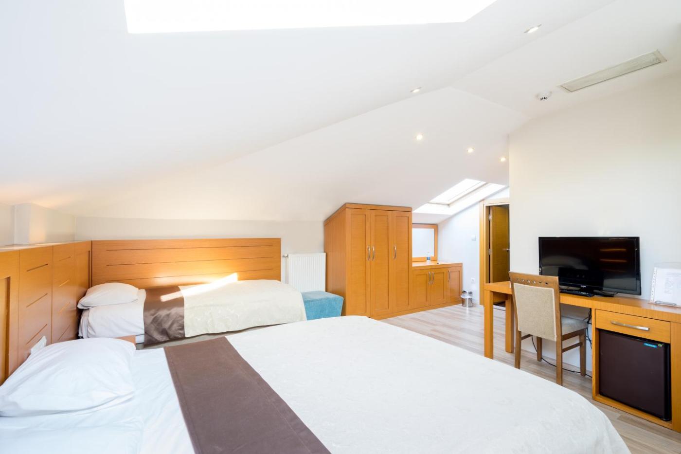 Triple Room. Offering free toiletries, this triple room includes a private bathroom with a shower, a hairdryer and slippers. The air-conditioned triple room offers a flat-screen TV with cable channels, soundproof walls, a minibar, a tea and coffee maker as well as city views. The unit offers 2 beds. ;