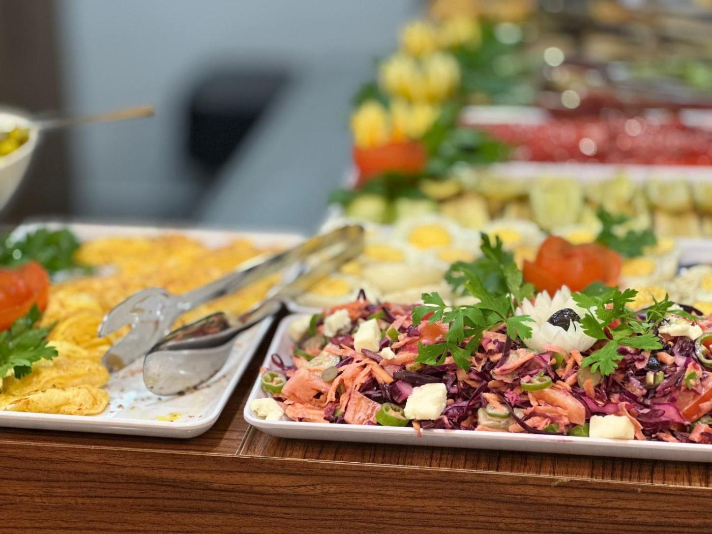 Buffet and halal breakfast options with warm dishes, fresh pastries and fruits are available. There is a coffee shop and lounge.