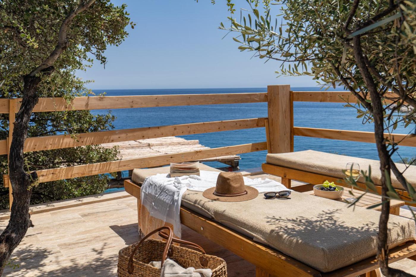 One-Bedroom Villa. This luxurious villa has a pool with a view, a hot tub and a fireplace. The air-conditioned villa features 1 bedroom and 1 bathroom with a bath and a shower. Guests will find a stovetop, a refrigerator, a dishwasher and kitchenware in the fully equipped kitchen. The villa also offers a barbecue. Featuring a terrace with sea views, this villa also provides a washing machine and a flat-screen TV with satellite channels. The unit offers 1 bed.